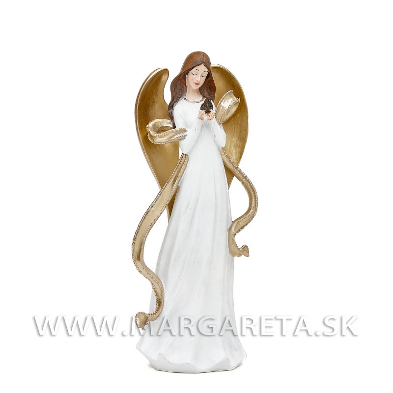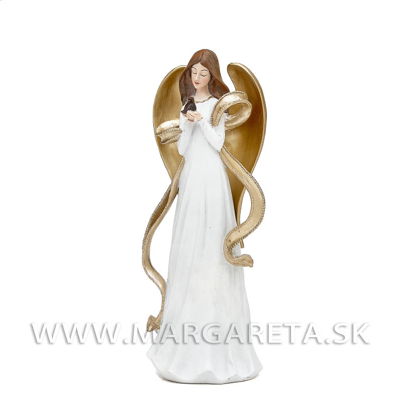 Anjel Magdaléna s vtáčikom ,so zlatou stuhou 35cm White-Gold