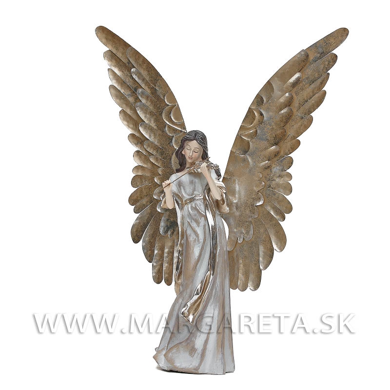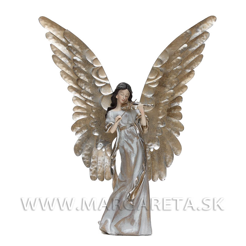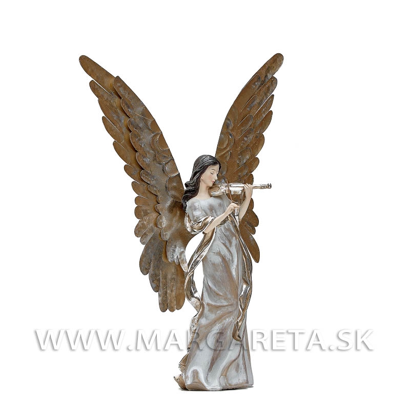 Romantický anjel s husľami. Nasadzovacie plechové krídla s lesklou champagne patinou.