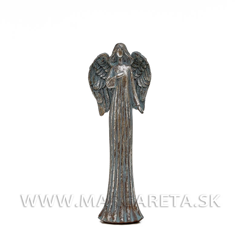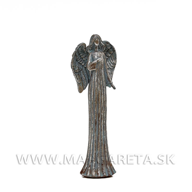 Anjel vrúbkovaný s rukou na srdci. Vhodný ako dekorácia do interiérov .