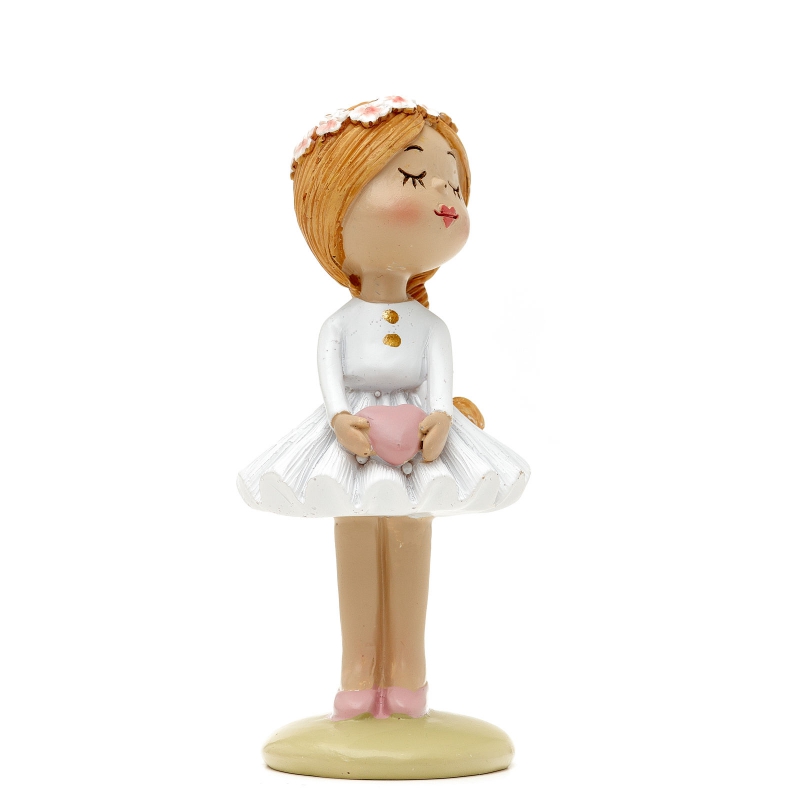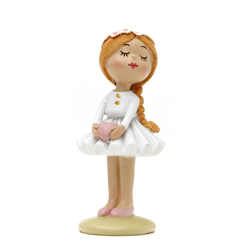 Dievčatko cop so srdiečkom v ruke v hnedom a bielom prevedení.