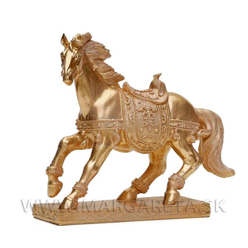 Jazdecký kôň s postrojom 27x24 cm Gold