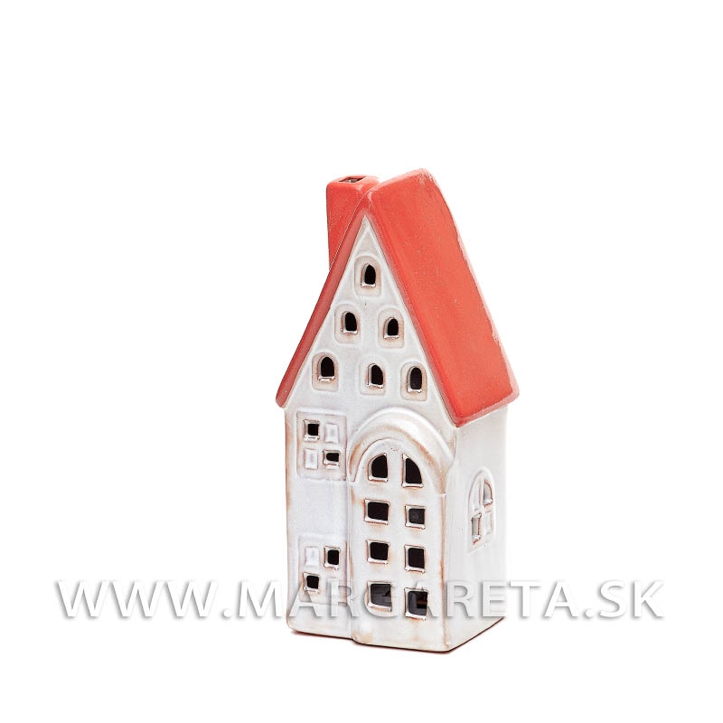 Keramický glazovaný domček dvere 16cm Grey-Brown LED svetlo