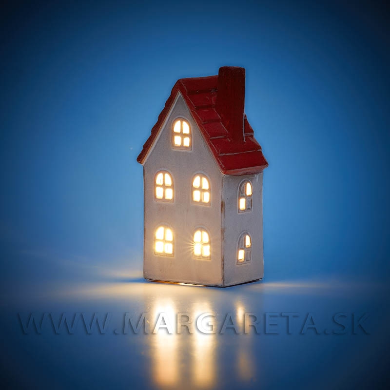 Keramický glazovaný domček komín 18cm Grey-Brown LED svetlo