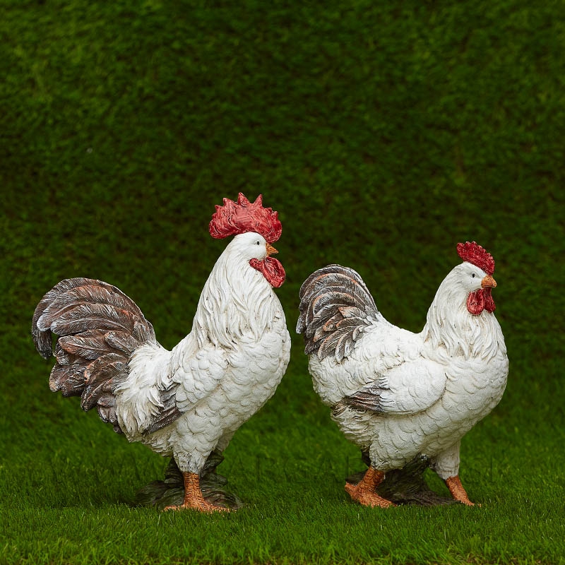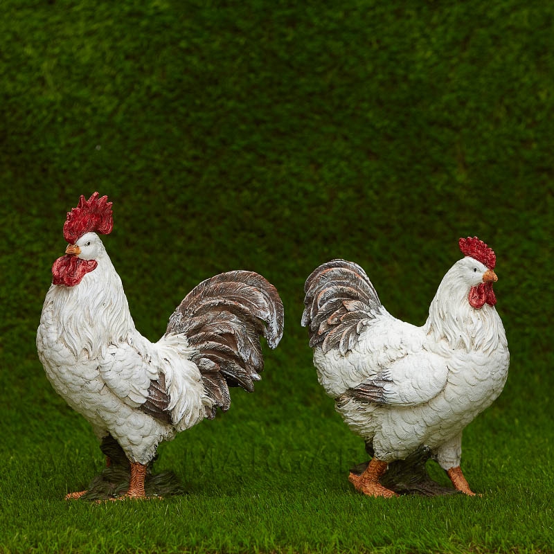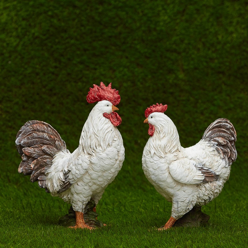 Realisticky spracovaný kohút a sliepka v rustikálnej štylizácii. Vhodný na aranžovanie a ako dekorácia do interiérov aj exteriérov.