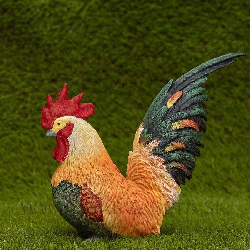 Realisticky spracovaný kohút v rustikálnej štylizácii. Vhodný ako dekorácia do interiérov aj exteriérov.