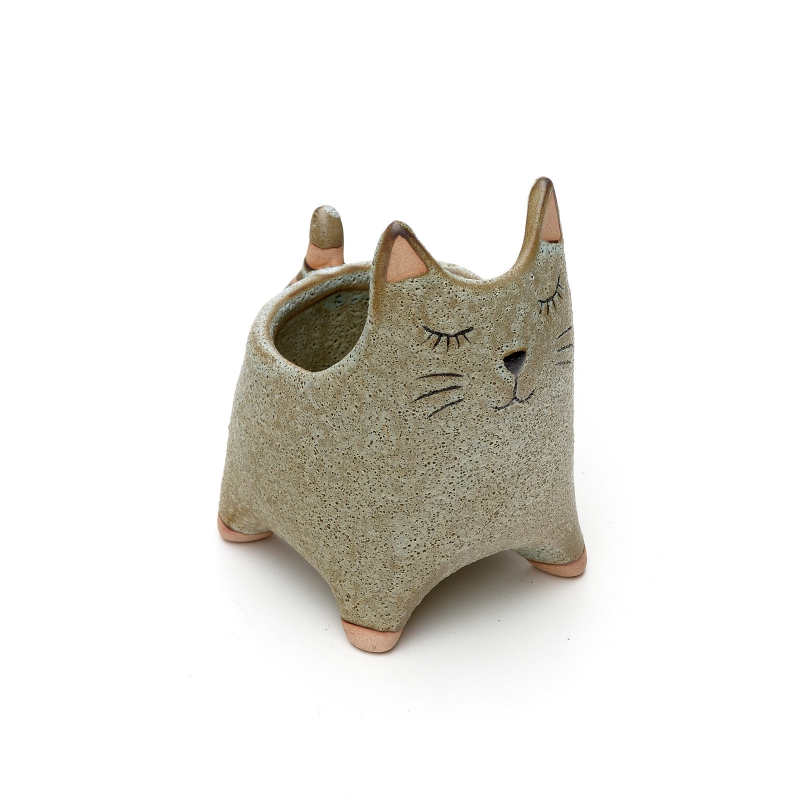 Obal - Mačka nádoba, vnútorný priestor vhodný na aranžovanie, na menší kvet alebo na uloženie drobností