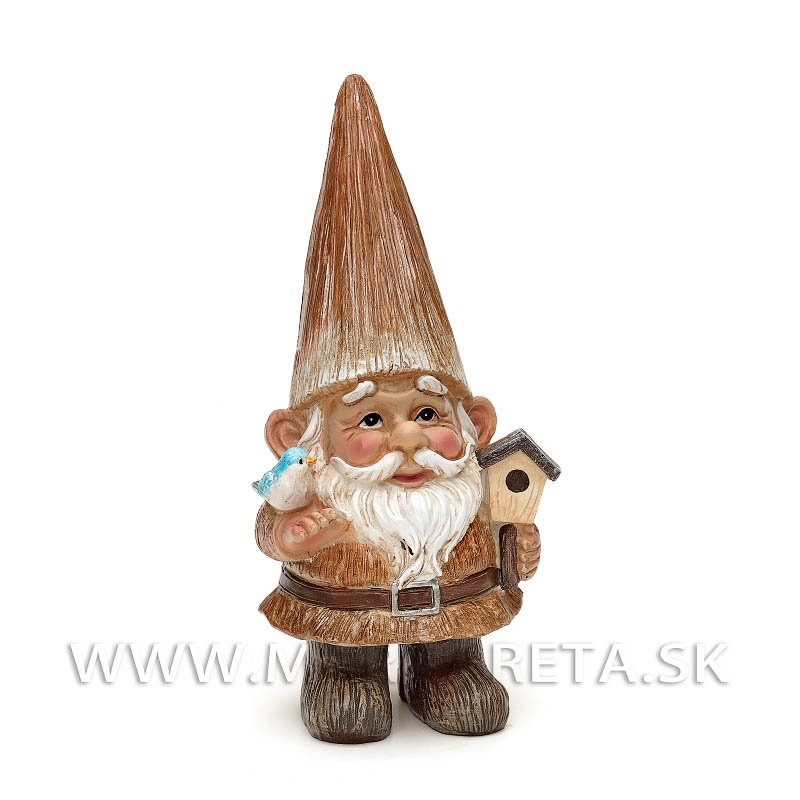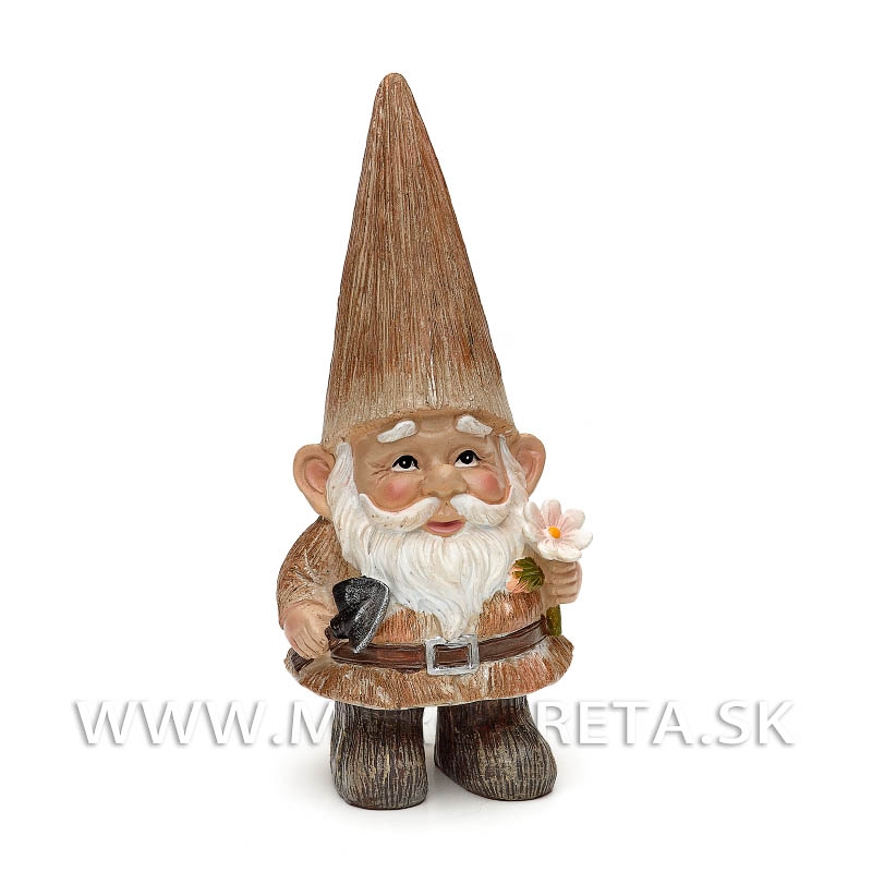 Trpaslíci - Záhradník s kvietkom a Trpaslík s vtáčikom 21cm Brown - pár